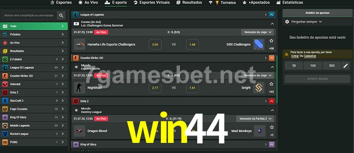 O win44 oferece uma grande seleção de opções de apostas em e-sports com probabilidades competitivas